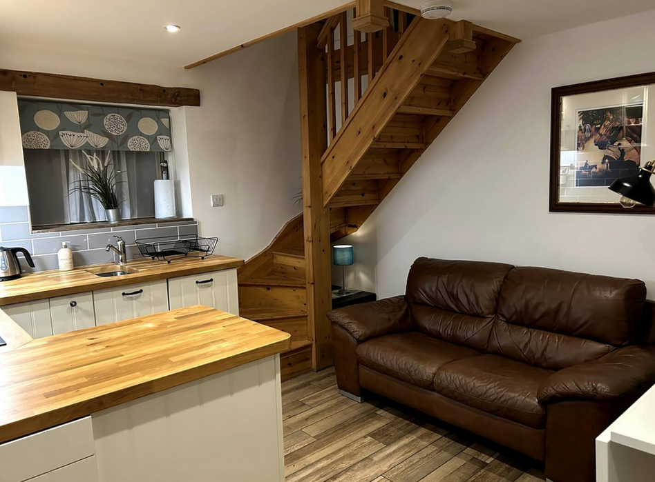 This fully furnished converted stable offers stylish, self-contained accommodation ideal for a single professional. The open-plan living area includes a fully equipped kitchen, two-seater sofa, smart TV, and underfloor heating. A sleek bathroom with double rain shower sits on the main floor, with a galleried bedroom above featuring a small double bed. Outside, enjoy a private fenced patio with BBQ overlooking the orchard and grazing land, plus secure parking for a peaceful, luxurious stay.